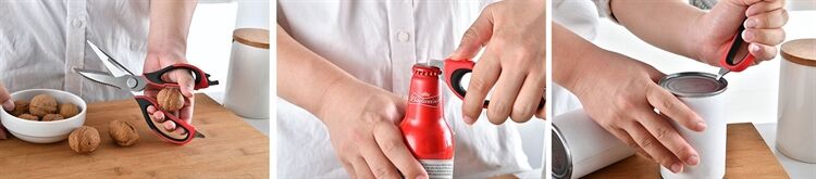 Mit dieser vielseitig verwendbaren Schere lassen sich nicht nur die Flossen abschneiden. Die Schere lässt sich im Handumdrehen in 2 Tools zerlegen, die Sie vielseitig nutzen können. Lieferung in Plastikscheide mit Magnet. Spülmaschinenfest.Hersteller
