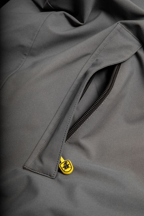 • Wasserdichter Frontreißverschluss mit innenliegendem Windabweiserstreifen