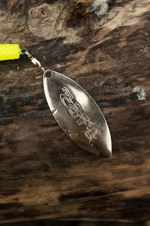 • Stark vibrierendes, aufblitzendes Schwanzblatt und seitliche Noppen, die das Wasser aufwirbeln.