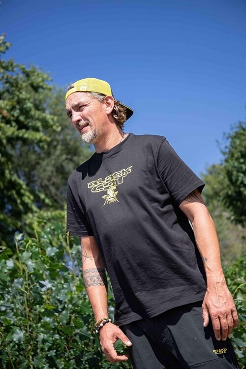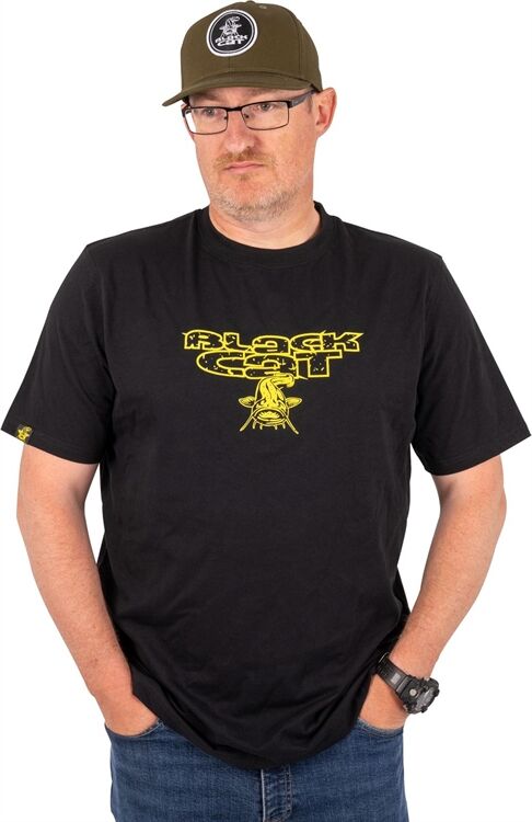 BLACK CAT Schwarzes T-Shirt mit Distressed-Logo• Erhältlich in sechs Größen: S, M, L, XL, XX-Large und XXX-Large