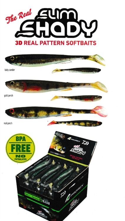 DAIWA Prorex Real Slim Shady | 135mm | 13,5gDer fängige Slim Shady aus dem DAIWA Prorex Sortiment ist nun in absolut realistischen 3D Live Print Designs erhältlich. Durch die spezielle Oberflächenbehandlung schimmert der Köder je nach Modell grünlich, golden oder bläulich auf der Oberfläche. Diese spezielle Farbgebung hat sich in vielen Field-Tests bereits als echter Fanggarant herausgestellt. Ein echter Real Slim Shady!