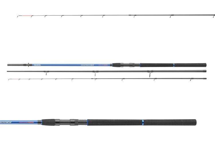 Die kraftvollen und dünnen Blanks der Ruten liegen balanciert in der Hand und zeigen gute Wurf- und Drilleigenschaften. Das Lineup bietet für nahezu jeden Anwendungsbereich die richtige Rute. Die Method Feeder Modelle mit 60g und 80g Wurfgewicht sind mit einer etwas parabolischeren Aktion konstruiert – ideal, um schnelle Fluchten von Karpfen oder großen Brassen am kurzen Vorfach abzufedern. Die Aktion der Distance Modelle mit 120g C.W. wurde für den Einsatz am großen Baggersee oder langsam fließenden Kanal optimiert und wirft präzise auch weit entfernte Spods an. Mit den beiden Power Feeder Ruten mit extra großer Beringung im Spitzenteil und 150g Wurfgewicht fischen Sie erfolgreich in harter Strömung und mit sehr schweren Futterkörben. Der Einsatz von Schlagschnüren ist dabei kein Problem. Mit den kraftvollen 180g C.W. Blanks der Carp Feeder Ruten stellt auch der Drill eines Fisches jenseits der 20 Pfund Marke kein Problem dar.