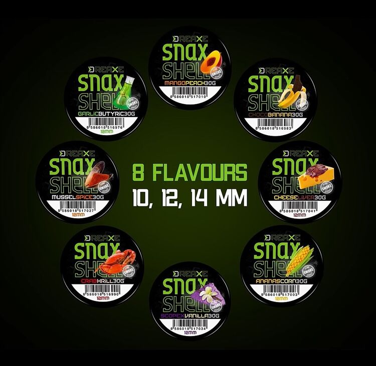 D SNAX SHELL werden in der Schneckenform in den Größen 10mm, 12mm und 14mm produziert, in attraktiven Farbkombinationen und in bewährten Geschmacksrichtungen, die die Fische garantiert nicht kalt lassen.