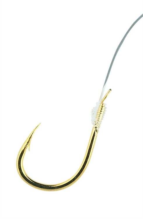 OWNER Karpfenhaken Gr. 1 Gold RL330, Vorfachhaken 70cmPerfekte Karpfen-Haken mit geschränkter Spitze und nach innen gezogenem Nadelpunkt für sicheren Anhieb und Drill.